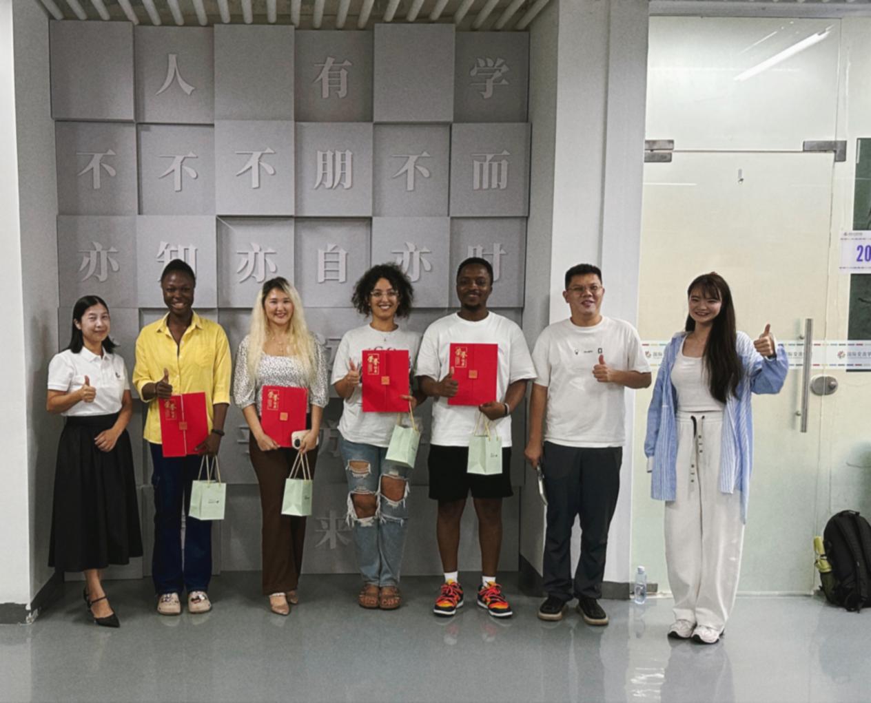 分享环节圆满落幕后,领导为每一位参与分享的留学生颁发了荣誉证书和礼物,以表彰他们在文化交流工作中所作出的杰出贡献。这些荣誉不仅是对他们努力的认可,更是对未来继续推动文化交流的鼓励。最后,所有与会人员齐聚一堂,共同合影留念,定格这一难忘而温馨的瞬间,让这份美好的记忆永远铭刻在每个人的心中。