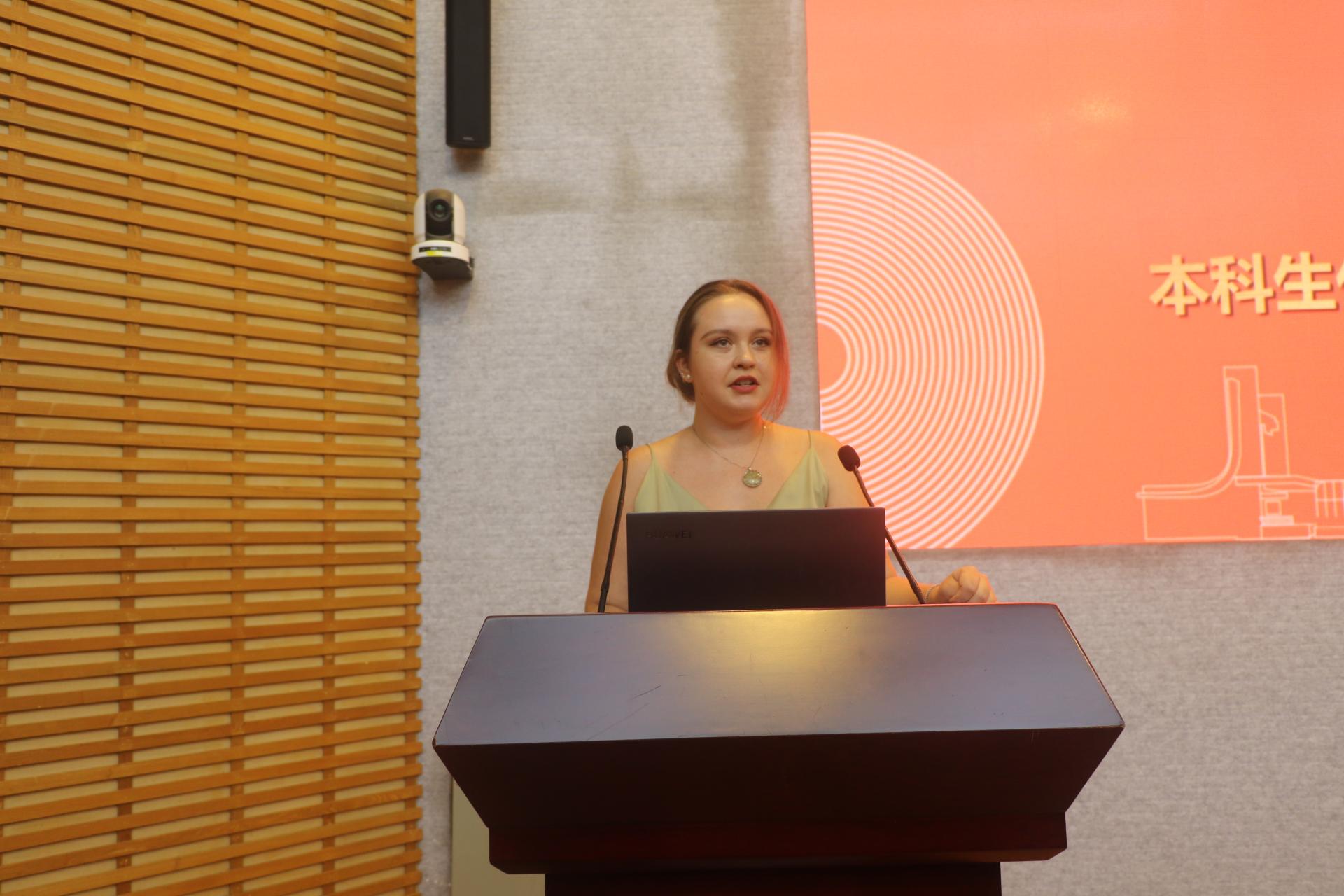 证书颁发结束后,两位优秀获奖学生代表发表了获奖感言。来自孟加拉的博士生UDDIN MD BORHAN,他表达了对深圳大运留学基金、学校和老师们的感谢,并表示获得该项奖励给予了自己极大的动力,将在今后的学习中更加勤奋、努力,认真学习专业知识,不断完善自己,为自己今后的学业和职业发展打下良好的基础。同时他还分享了自己的奖学金申请经验和科研发表经历,鼓励新生努力学习积极申请奖学金。来自俄罗斯的本科生SHAMSUTDINOVA YANA在发言中对老师和同学表达了最真诚的感谢,并分享了自己在中国的学习和生活经历,她表示获得这项奖学金,不仅是对她努力的认可,更是一种激励,她会继续努力学习,不断提升自己。
