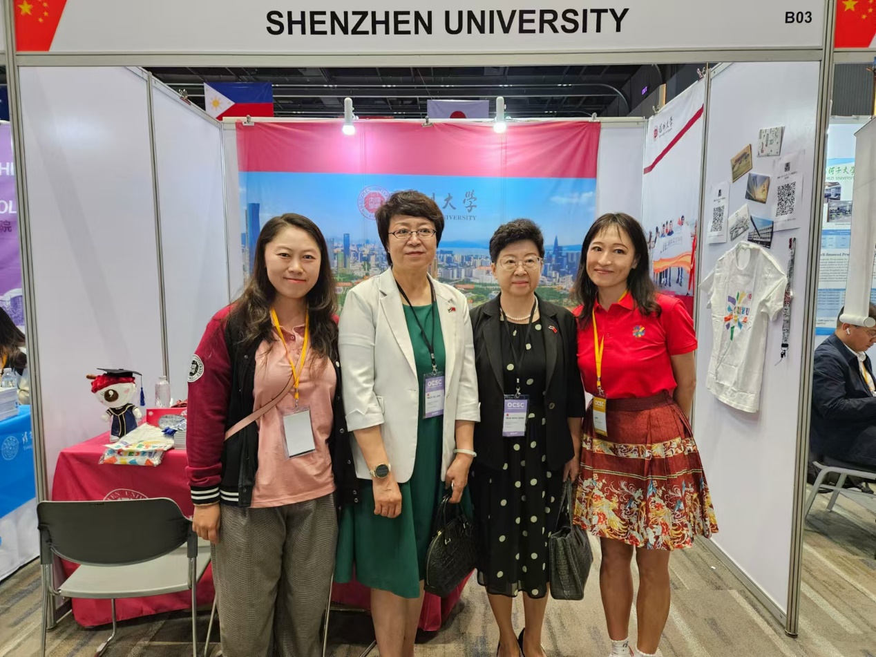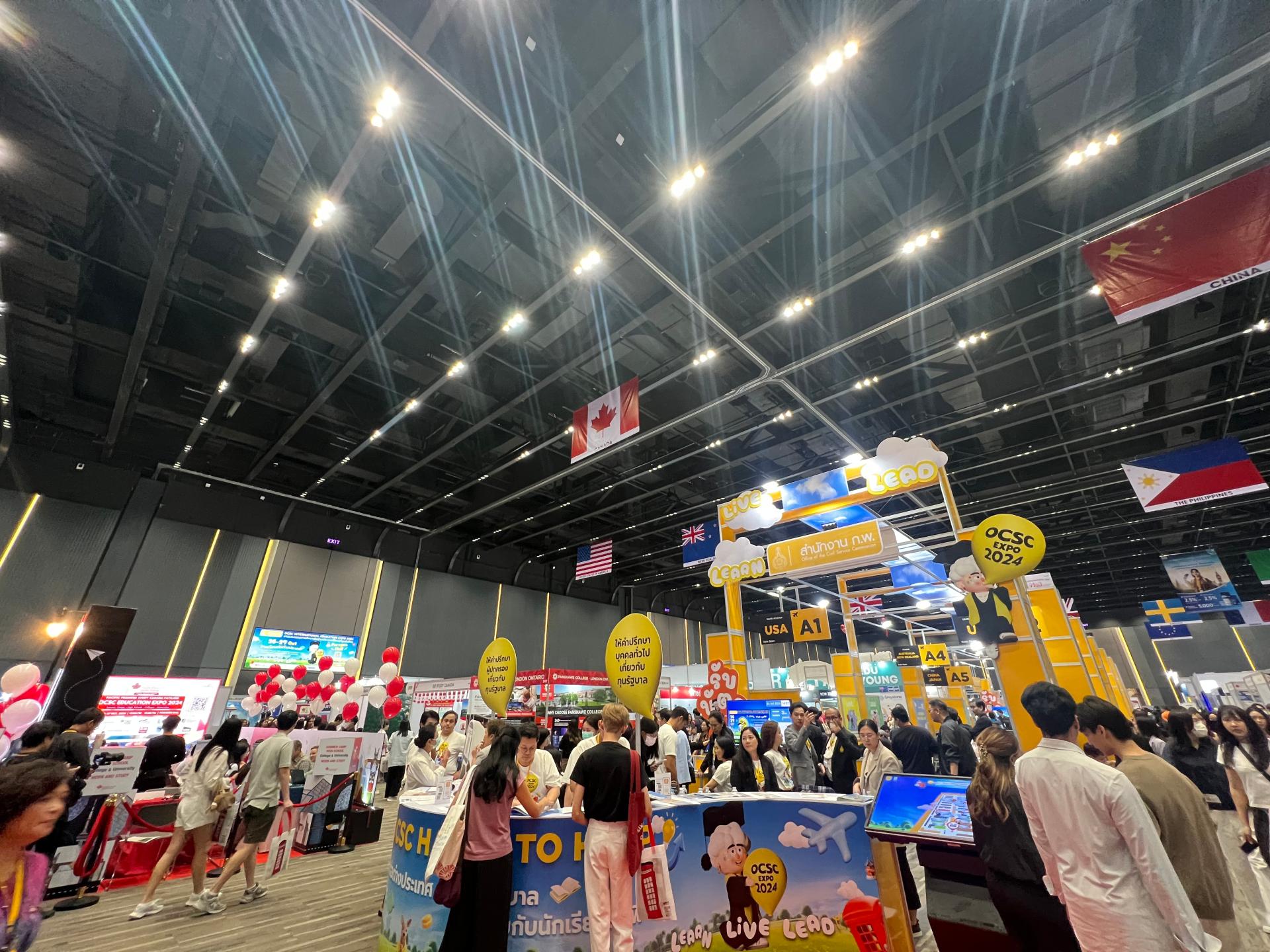 为促进深圳大学与泰国高校的教育文化交流,满足学校国际交流和国际学生招生需求,扩大我校与泰国高校的生源,深圳大学国际交流学院邱欢老师、黄巍老师于2024年10月25日至29日前往泰国曼谷的Royal Paragon Hall举行的OCSC国际教育博览会(Ocsc International Education Expo 2024)进行参展交流。该博览会为泰国最大的国际教育博览会之一,已经成功举办了19届。有超过300家全球领先的教育机构参与,覆盖25个国家,为参与者提供从申请到毕业的全程指导。此次会展吸引了超过15,000名人次。此次出行,有包括北京理工大学、上海交通大学、中国科学院地理科学与资源研究所、深圳大学在内的24所中国高校参加了此次教育博览会。驻泰国使馆教育参赞许兰莅临现场,与国内各高校老师亲切交流。