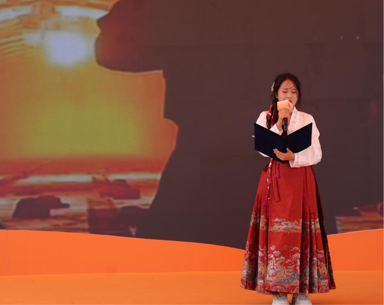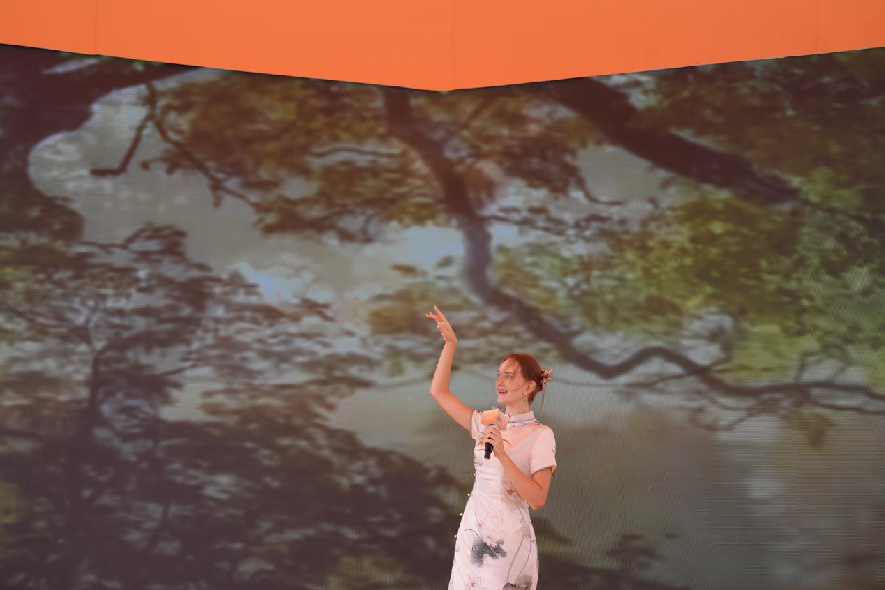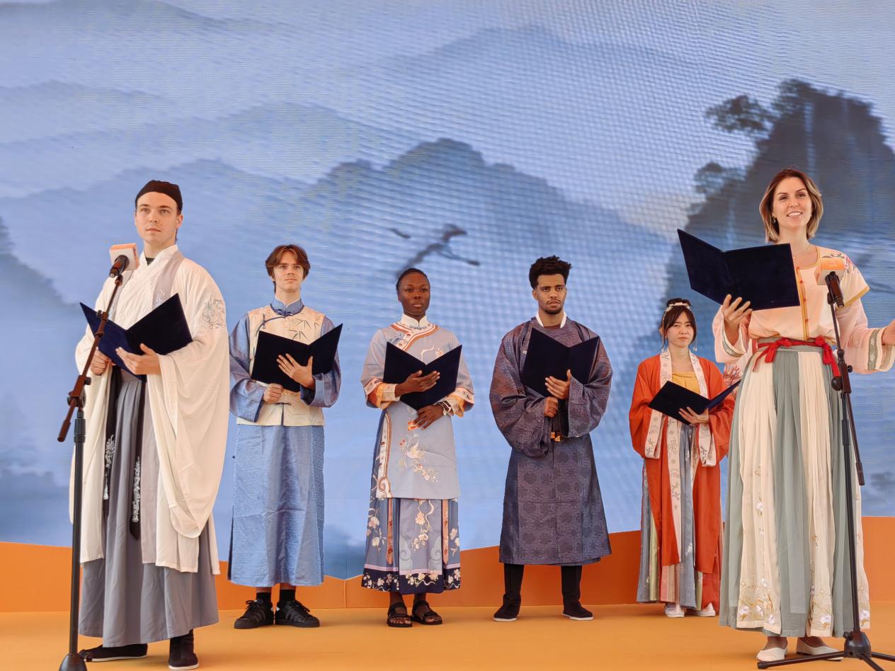 在水幕广场的灯光下,来自尼日尔、巴基斯坦、俄罗斯等9个国家的10位留学生身着传统汉服,如同从古代画卷中走出的诗人,深情地演绎了一系列中华经典诗歌。一首首古诗在他们的诵读中焕发出别样的魅力,如同春日的花开,夏日的清风,秋日的落叶,冬日的暖阳,每一种细腻的情感都在他们的诵读中得到了完美的诠释。他们的声音和汉服的飘逸,共同展现了“书香能致远,诗书气自华”的境界,让人置身于一个充满诗意的世界,感受到了中华文化的无穷魅力和深远影响。
