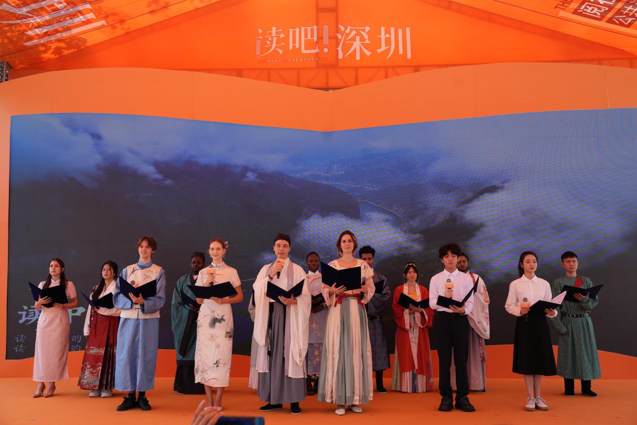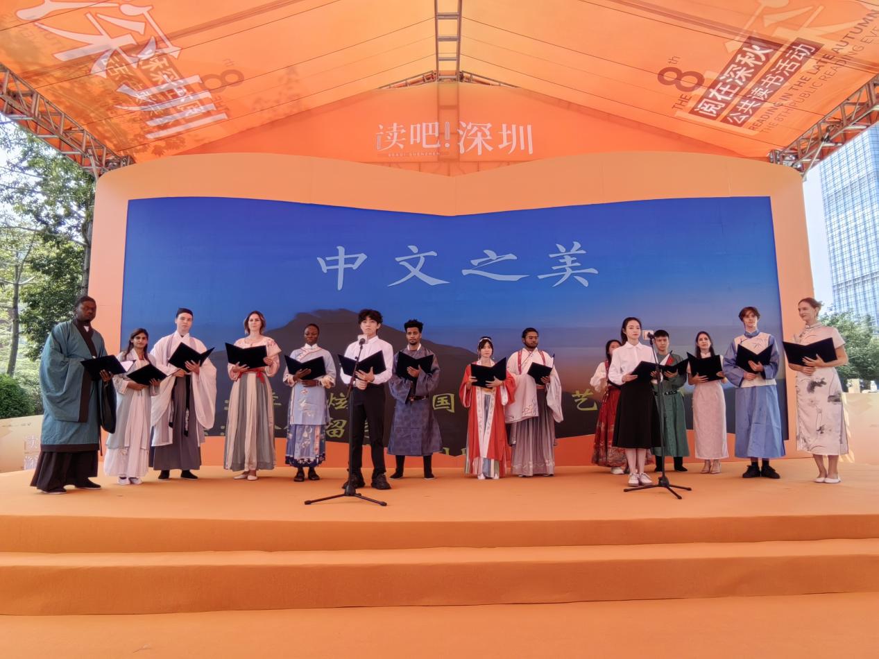 秋风送凉爽,书香满深圳。11月2日,深圳第八届“阅在深秋”公共读书活动在深圳图书馆中心馆东侧水幕广场主舞台盛大开幕。来自深圳大学国际交流学院的15名留学生,以“雅言传承文明,经典浸润人生”为主题,用来自12个国家的声音为中华经典诵读活动增添了无限光彩。本次活动通过精心策划,共分为三个篇章,分别是“盛世华章”、“圣贤雅言”和“古诗雅韵”。旨在通过诵读中华经典,展现中华文化博大精深。