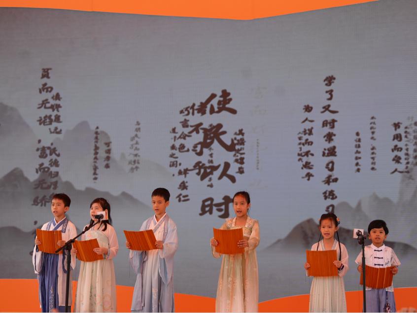 六位中外学童用清脆稚嫩的声音,诵读了《论语》的经典章句。他们的声音如同清晨的露珠,纯净而透明。这些年轻的诵读者用他们对先哲智慧的理解和感悟,展现了中华文化的深邃与智慧。现场观众被他们的声音深深吸引,仿佛穿越时空,与孔子等先哲对话,感受着中华文化的博大精深、源远流长。