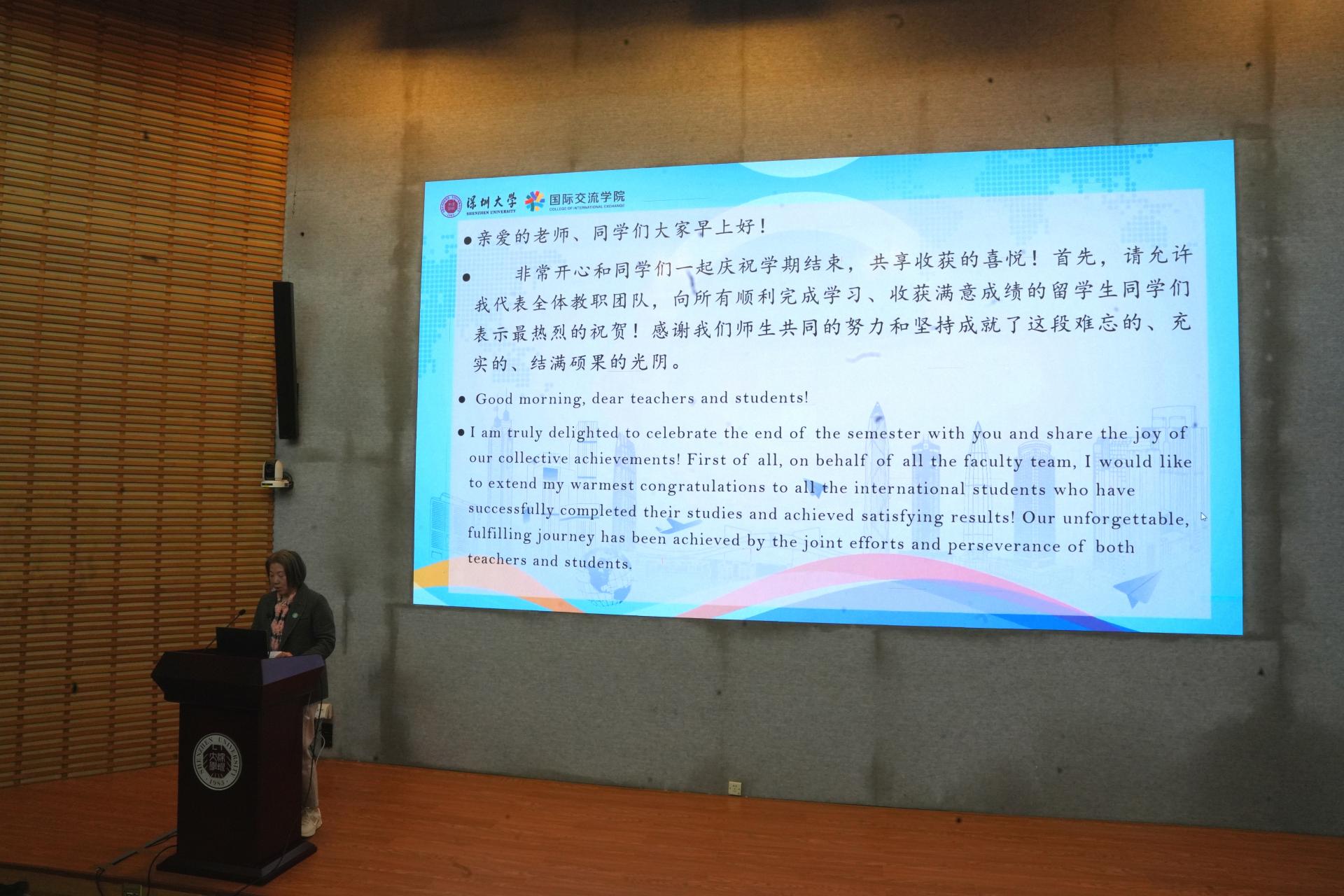 出席本次结业典礼的领导和嘉宾有国际交流学院副院长张大强、副院长区莹、副院长郑捷、副书记秦晴、语言生班主任、任课教师及全体留学生。仪式由陈婷婷老师主持,师生共同见证了这一重要时刻。