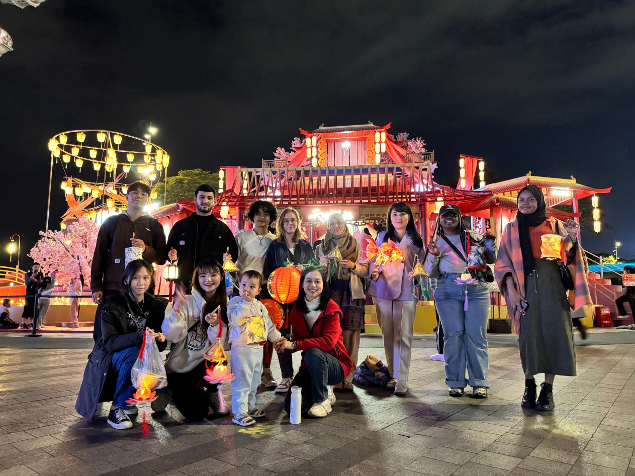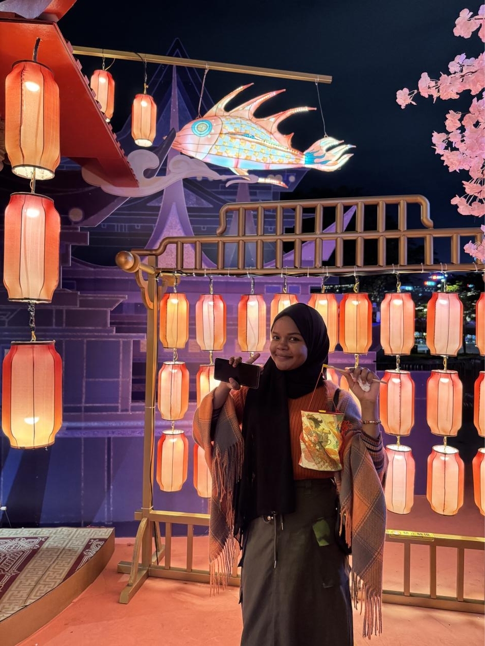 当大家走进欢乐港湾千灯灯会,体验《天官赐?!范У苹靡怪魈饣疃保獬⌒麓嚎窕洞锏搅烁叱??!盎鹗饕ê?,星桥铁锁开”,踏入灯会现场,仿佛进入了一个梦幻的仙境。千盏华灯闪耀,如同繁星洒落人间,满眼皆是绮丽的景象。传统花灯制作精美,古韵悠长,仿佛在诉说着历史的故事;热门动画元素与之完美融合,就像跳动的时代音符,为古老的韵味增添了生机与活力。同学们漫步其中,时而被巧夺天工的灯组造型吸引,为传统工艺的魅力而惊叹;时而因看到动画里熟悉的角色出现在花灯上而欢呼雀跃。此时,“为你明灯千盏,为你花开满城” 的诗意浪漫变成了现实,大家纷纷拿起手机,想要留住这一幅幅绝美的画面。每一张照片都凝聚着新春的喜悦,融合着多元文化的独特魅力。