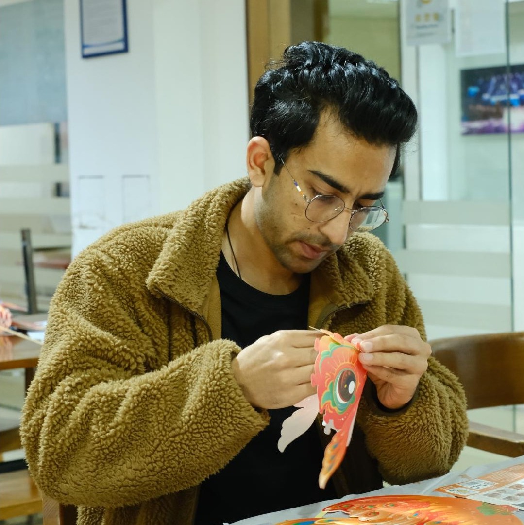 活动当日,活动室内张灯结彩,氛围浓厚。各式各样的花灯制作材料错落有致地摆放着,仿佛正等待着学生们用巧手赋予它们生命。中外学生们齐聚一堂,他们的眼中闪烁着对未知的好奇与对传统文化的敬仰。