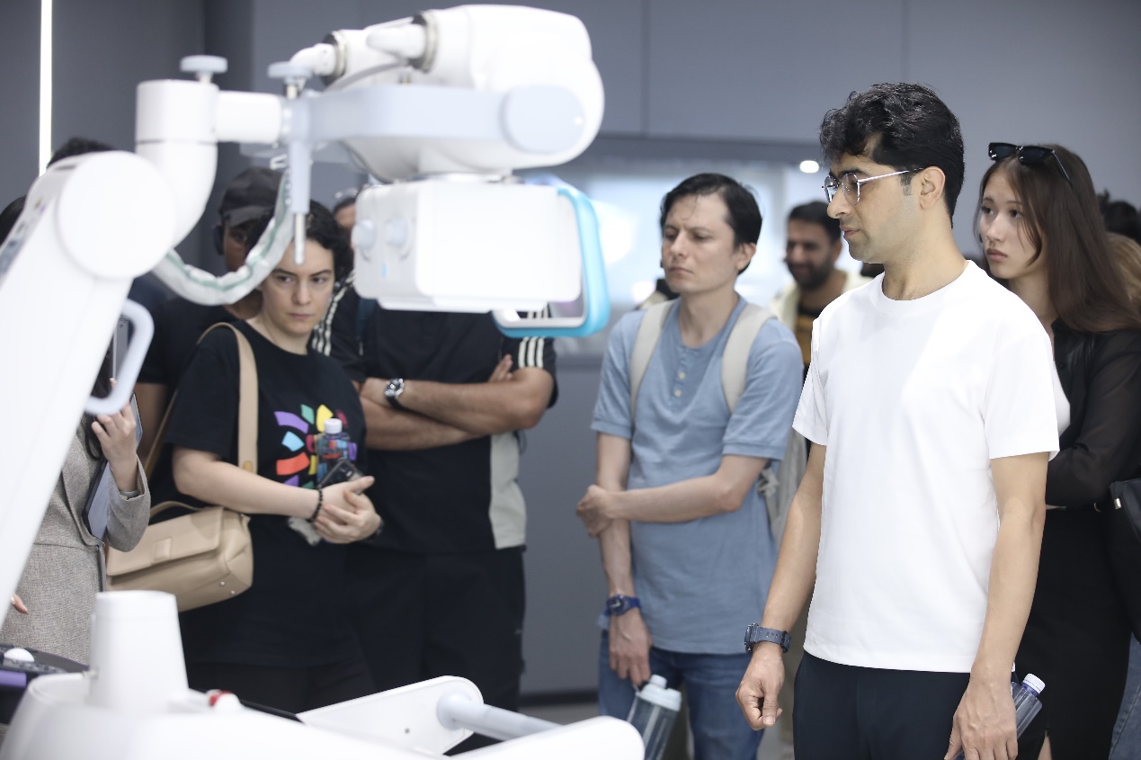 在迈瑞医疗展厅,讲解员为留学生们详细介绍了公司的发展历程、企业文化及未来愿景。随后,同学们来到产品展示区,近距离观察了种类繁多的医疗仪器。这些设备广泛应用于医院临床检查、手术治疗等领域,其中不少高端仪器配备智能屏幕,部分屏幕上展示手术过程还需借助3D眼镜才能清晰观测内部结构。留学生们纷纷感叹医疗科技的先进与精密,对迈瑞的创新实力表示赞叹。