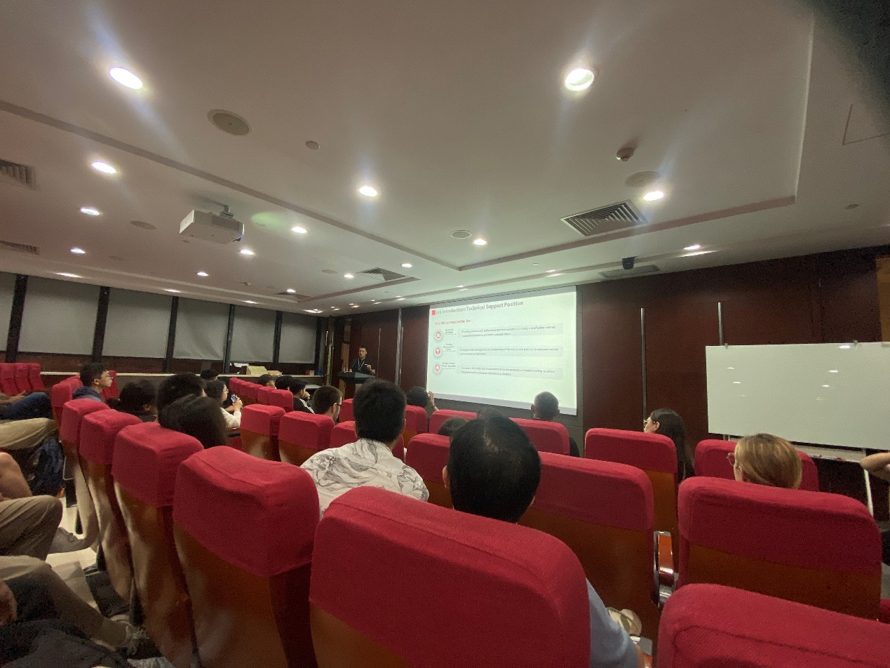 本次活动不仅是一次企业参访,更是一场就业对接会。迈瑞医疗此次面向来华留学生开放了海外业务技术支持岗位的招聘机会,吸引了我校部分有意向的留学生专程前来了解。迈瑞医疗HR Ashely向同学们介绍了公司的发展历程及人才需求,海外业务部门的招聘主管则详细讲解了该岗位的工作内容、职责及发展前景,帮助同学们深入了解职业机会。在互动环节,留学生们踊跃提问,就岗位要求、职业发展路径等问题进行了交流。