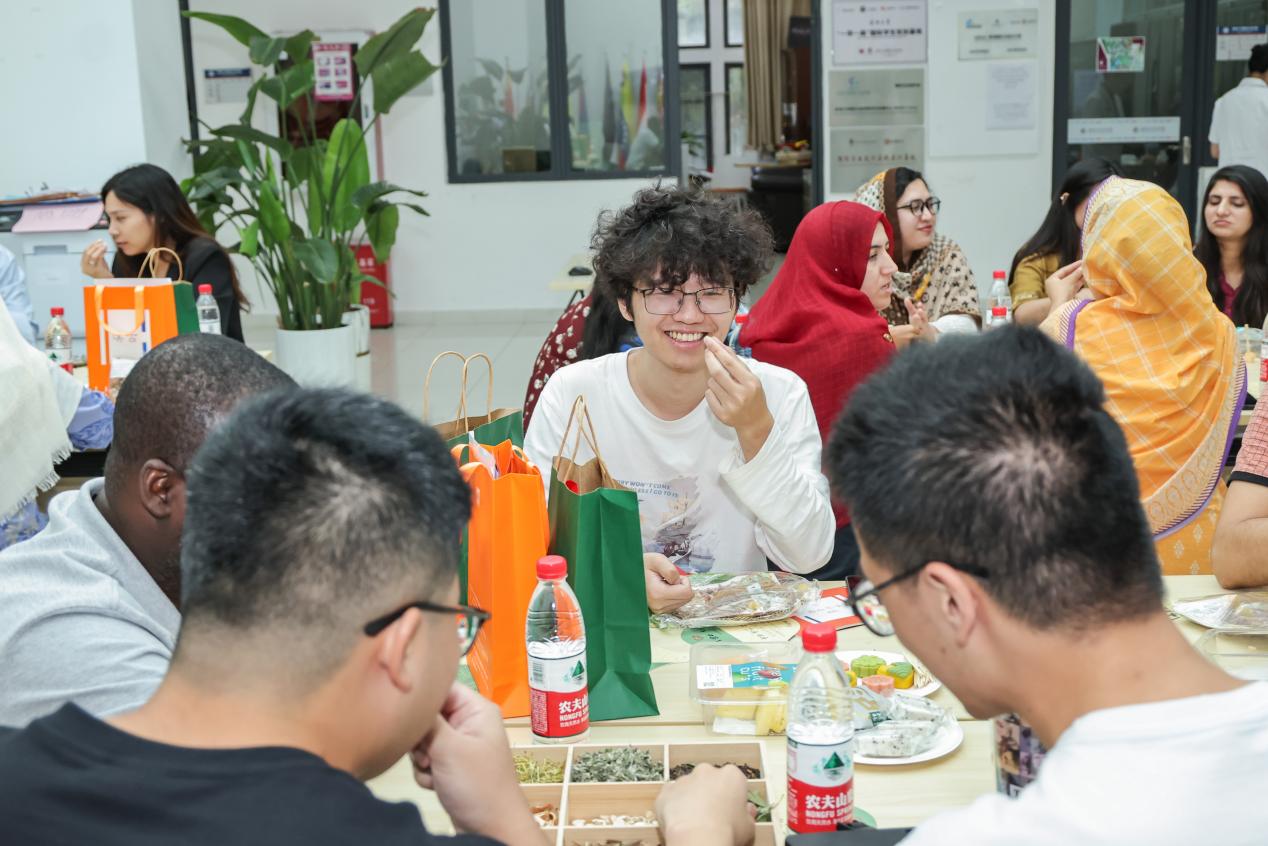 活动尾声,大家一起合影留念,香囊与门挂装点着他们的笑脸,成为这场文化之旅最美的见证。随后,茶歇时间温馨开启,大家边享用中式茶点,边聊起彼此的节日、家乡、语言与文化。每一个微笑,每一次眼神交流,都是文化沟通的桥梁。