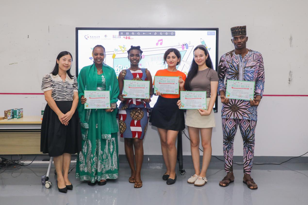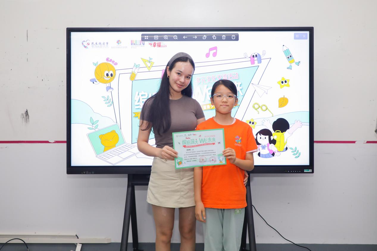 7月15日下午,闭营仪式在收获的喜悦与些许的不舍中举行。孩子们自豪地展示着他们精心制作的文化作品:墨西哥草帽画、巴西树叶足球、俄罗斯树叶蝴蝶、摩洛哥粘土锅、韩国面具、阿根廷粘土作品、以及一幅幅太空画、拓印艺术品……琳琅满目的作品汇成一个微缩的“童眼看世界”万国博览会。深圳大学国际交流学院副书记秦晴出席闭营式,充分肯定了夏令营在促进文化交流、拓展青少年视野方面的积极意义,并向无私奉献的留学生们表达了由衷感谢。