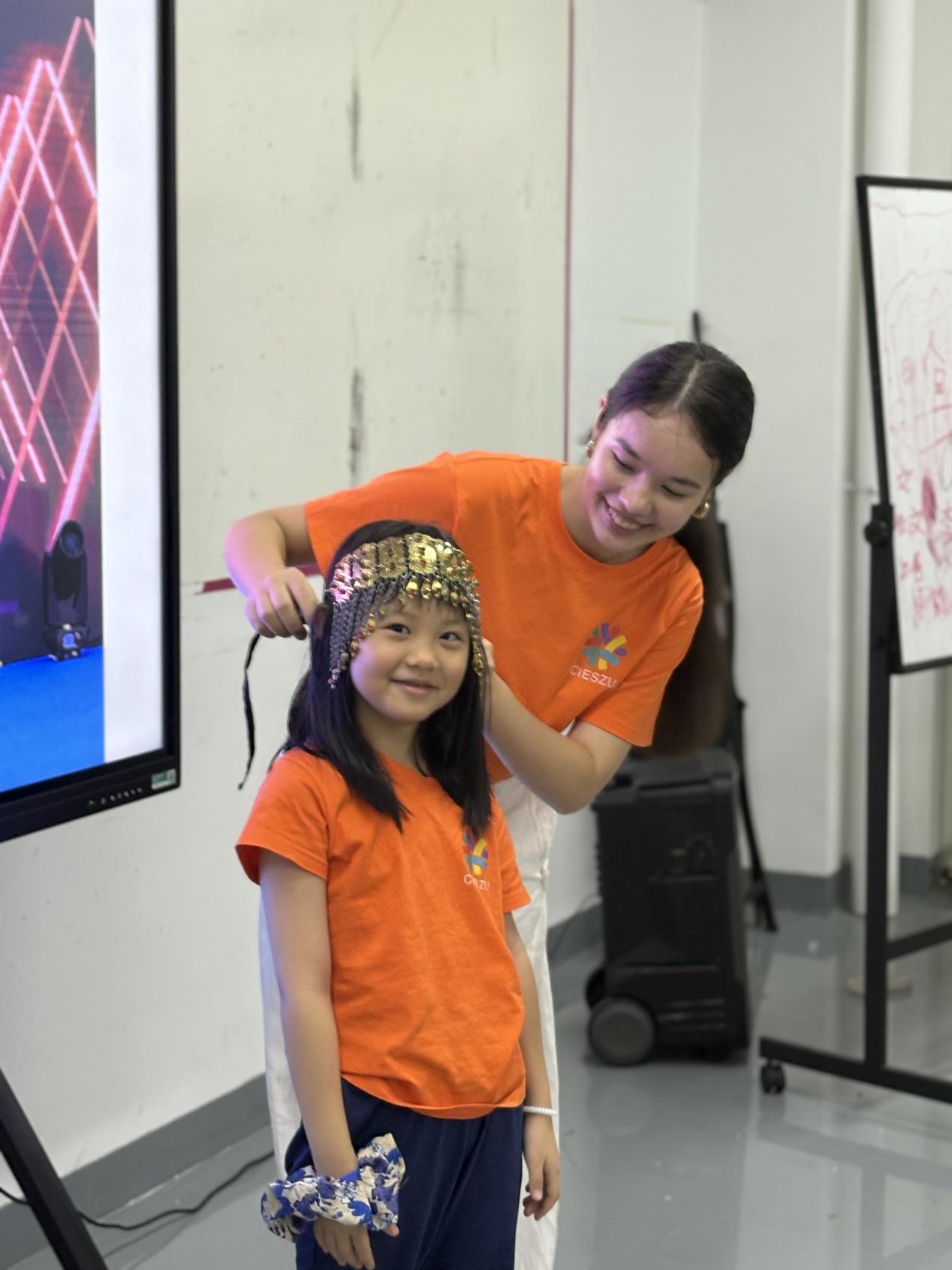 伊朗留学生索菲亚(EBRAHIMI MOHADDESEH)展示了这个古老文明的瑰宝。一个精彩的波斯故事引人入胜,随即孩子们沉浸在绚丽的几何图案绘画中。灵动的波斯舞蹈教学更是将气氛推向高潮,孩子们扭动腰肢,感受着丝路另一端的韵律节奏。