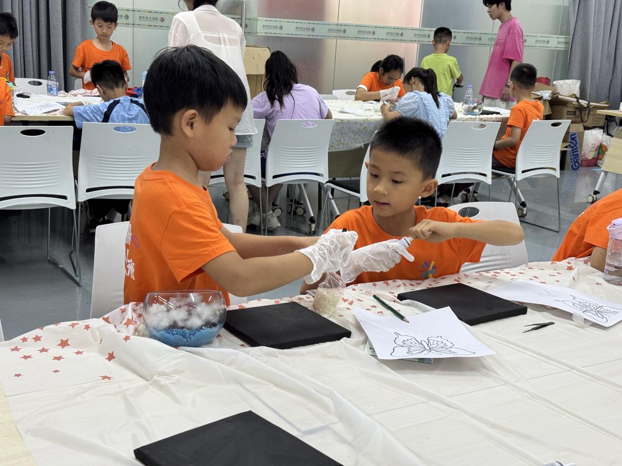 特色手工课堂别出心裁。孩子们化身小小工艺师,一颗颗晶莹的珍珠在他们巧手拼贴下,化作梦幻的图画。专注与耐心在此刻凝结,指尖流淌的是美的创造与无限想象力。