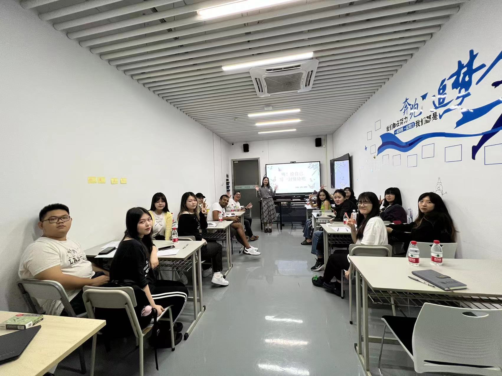 随后,带领者展示了查理卓别林写给自己的情诗,以此引导同学们给自己写一首情诗。同学们各显身手,创作了许多极富诗情画意的佳作。