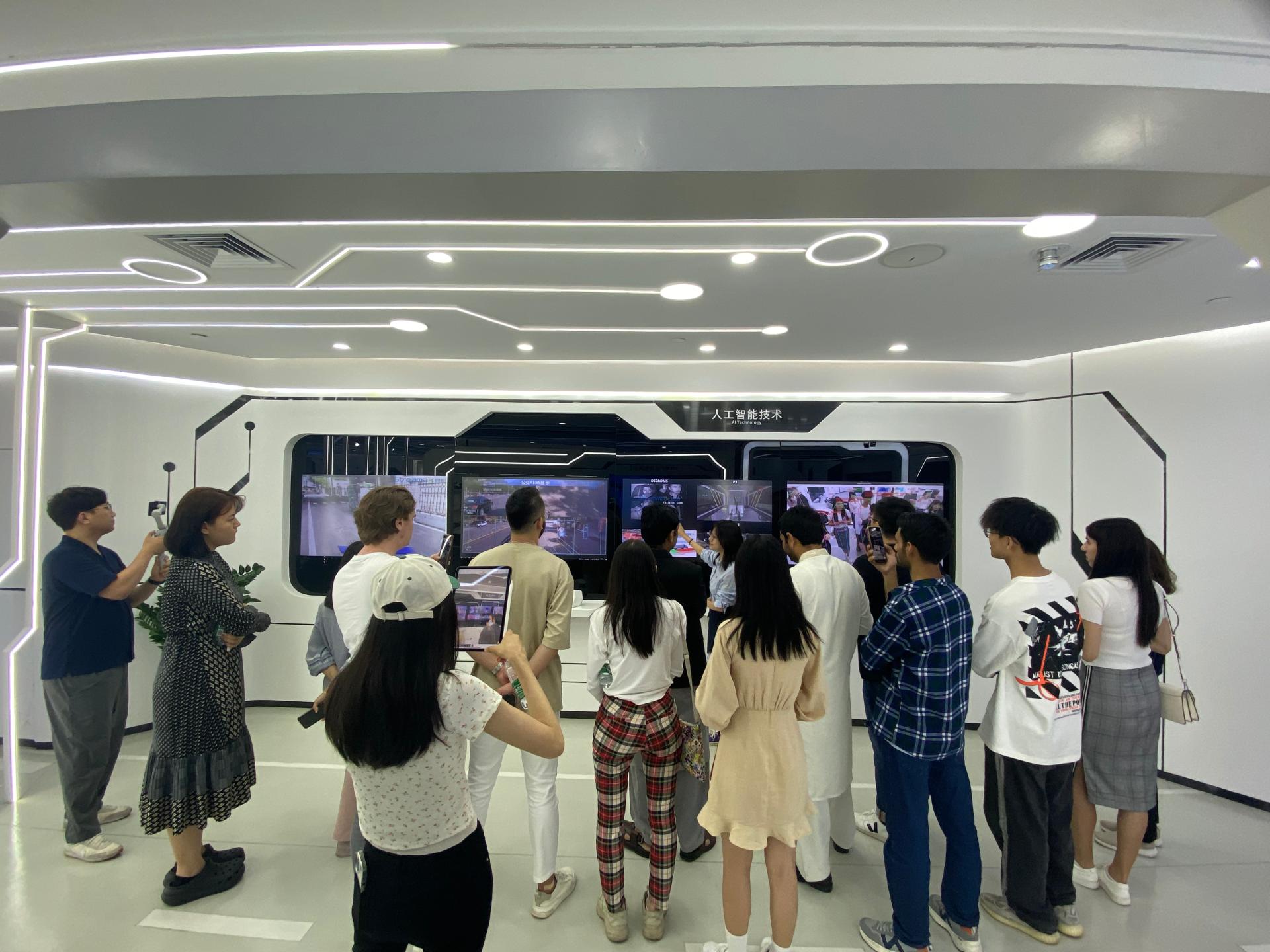 留学生们到达锐明技术后,首先在锐明技术工作人员带领下进入展厅,分别参观了锐明技术的终端产品、可靠性技术、摄像机、人工智能技术、核心技术及其应用领域(如公交、矿车、工程车、出租车、警车等),同时也对FCW前车报警系统、UFCW虚拟保险杠报警系统、LDW车道偏离报警系统、LDW车道偏离报警系统、PCW行人碰撞预警系统等AI技术进行了深刻的了解。
