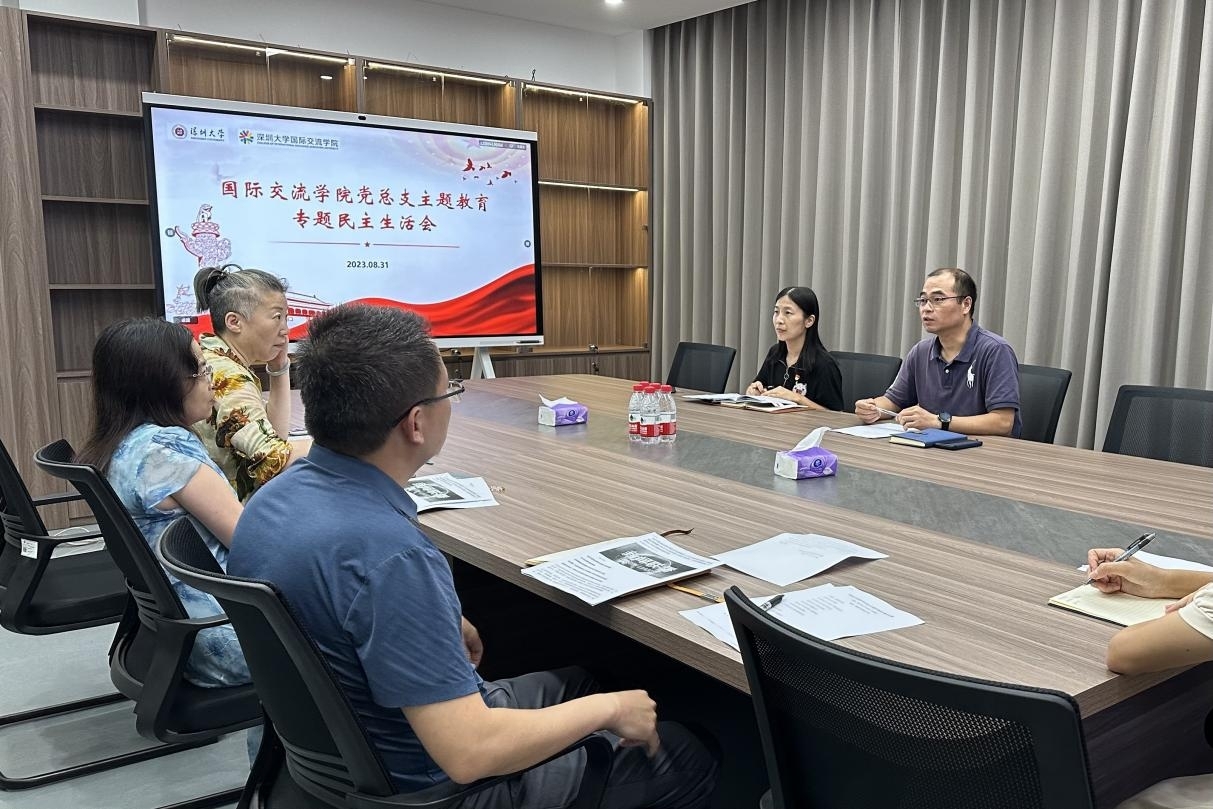 为深入开展学习贯彻习近平新时代中国特色社会主义思想主题教育,落实上级党组织关于在学习贯彻习近平新时代中国特色社会主义思想主题教育中开好专题民主生活会的工作部署,2023年8月31日上午,国际交流学院党总支在朝夕楼204室召开主题教育专题民主生活会。学院副书记秦晴主持会议,院长潘燕春、副院长张大强、副院长区莹出席会议,副院长郑捷列席。
