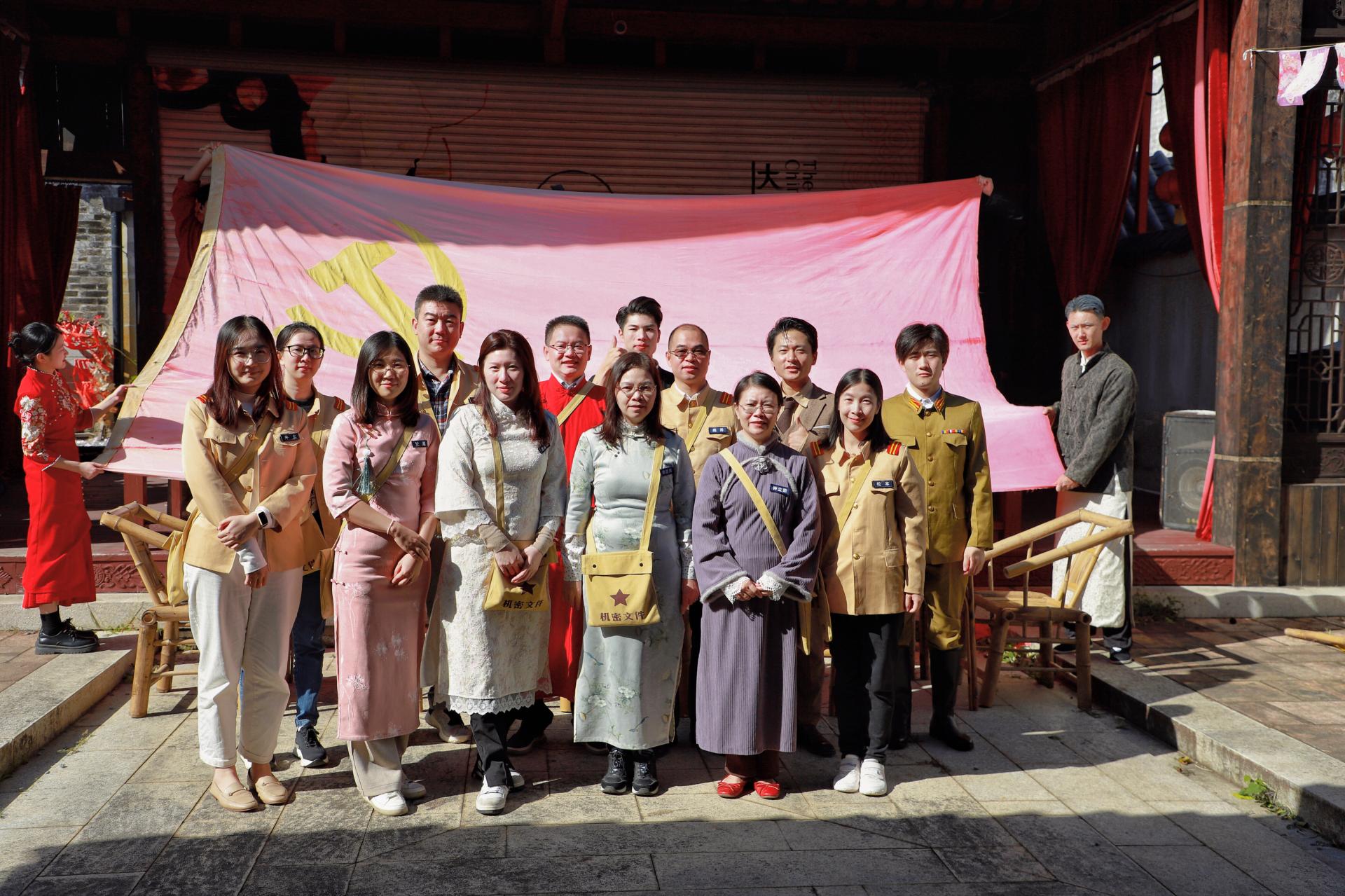 随后,党员体验了红色沉浸式剧场项目《鹏城谍影》?!杜舫堑啊芬蕴厥饽甏榷怨疑乐凉刂匾闹斗肿游魈?,是深圳首个依托真实历史古城设计的红色沉浸式剧场项目。国际交流学院党总支一行根据剧中不同人物设定,参与并完成任务,沉浸式地体验当年东江纵队地下工作者的“谍战”经历。通过参与演出,让每一位党员都充分感受革命先辈舍我其谁的勇气和决心,感悟他们对共产党人的价值追求的诠释。最后全体党员重温入党誓词,在党旗下宣誓。