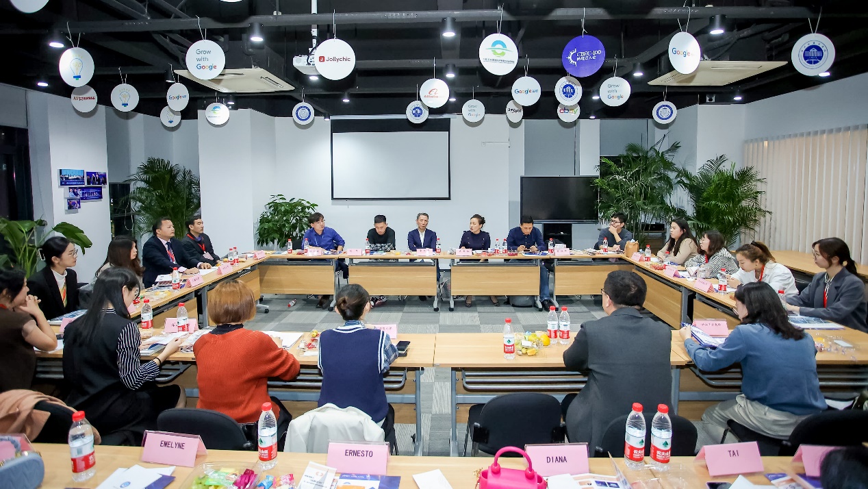 同时,杭州市自贸委跨境电商处处长武长虹女士还组织了高校座谈会,了解各高校目前国际学生发展情况,现场解答高校代表关于组织国际学生创新创业工作的疑问,例如优质生源缺失、国际学生签证问题等。其中,深圳大学代表陈默提出,杭州市自贸委跨境电商处、阿里巴巴速卖通可以与深圳大学共同打造跨境电商相关的商业课程,让更多的就业、学习资源倾斜到华南区域的国际学生中间去,在座的各位领导、老师及同学对于该提议的认可度较高,表示可将方案规划列入日程。
