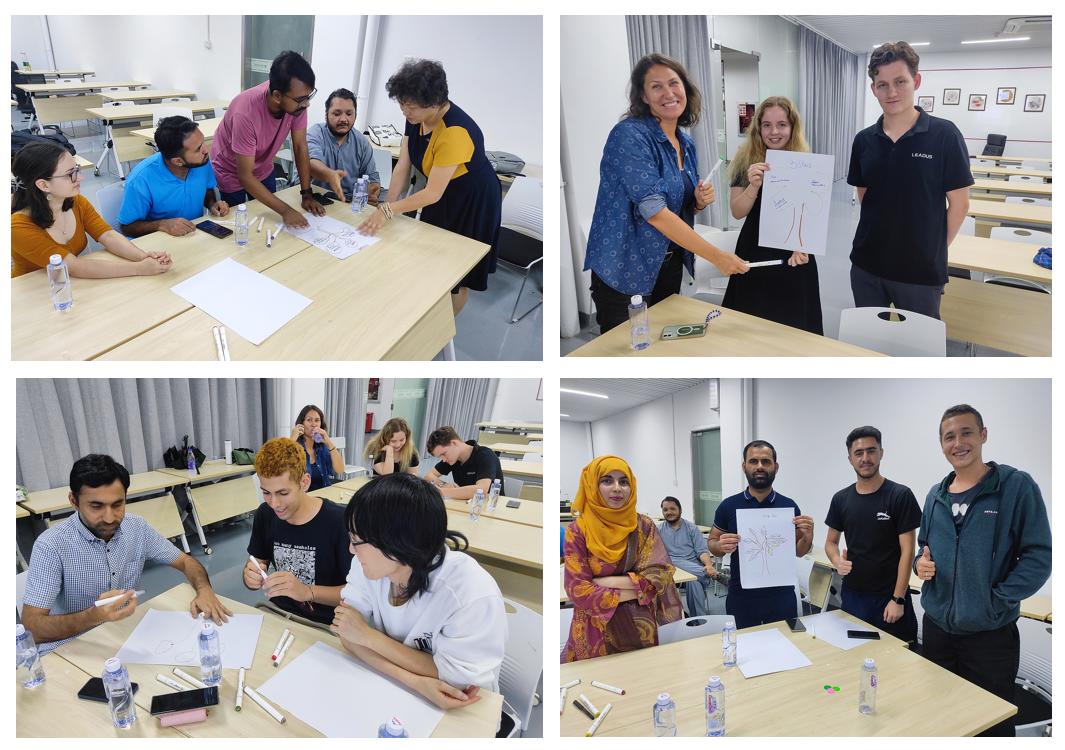 随后,学院就业指导中心李峰玲老师为留学生们带来了生涯规划意识唤醒的讲座??翁檬紫韧ü票疃钤究翁闷?,然后以小组合作PK积分形式,充分调动起所有同学们全情投入和参与。除讲座之外,课堂还通过分组、自我介绍、共画生长树等互动环节进行团队建设,增强同学们之间的合作意识。最后在人生大戏环节,同学们分小组模拟表演人生各个不同阶段的境遇,引导同学们深度思考人生该怎样度过,并进行了成果展示和分享,互相学习和借鉴。