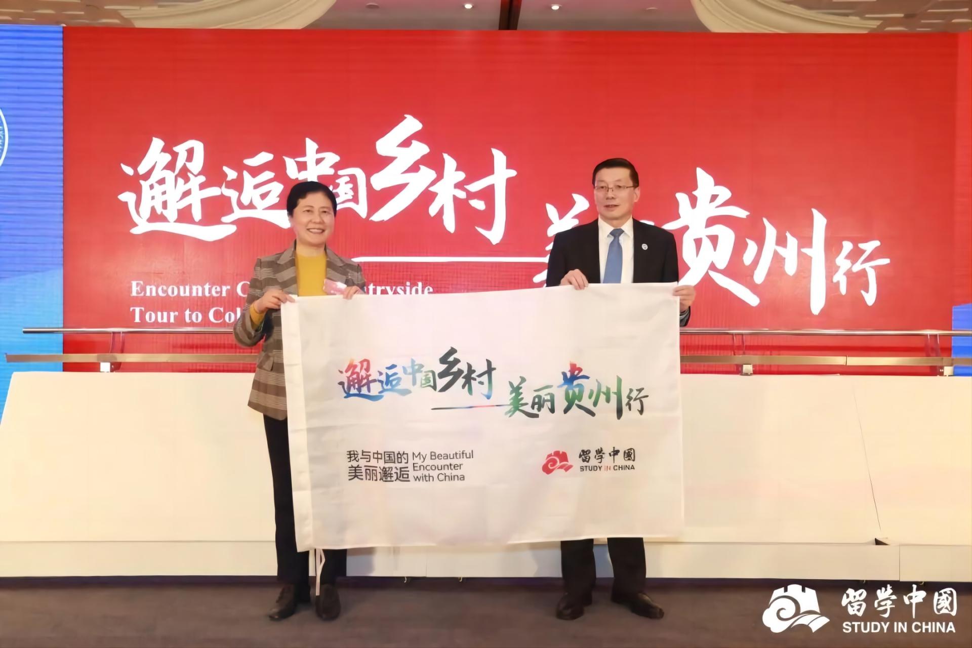 教育部留学服务中心向贵州省教育厅授与“邂逅中国乡村·美丽贵州行”活动旗帜