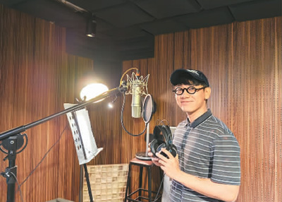 深圳大学国际合唱团团长申文燮在录制歌曲时留影。