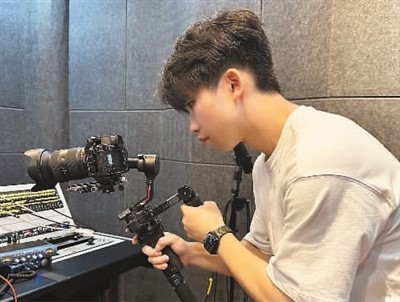 深圳大学国际合唱团摄影师黄伟豪正在拍摄视频。