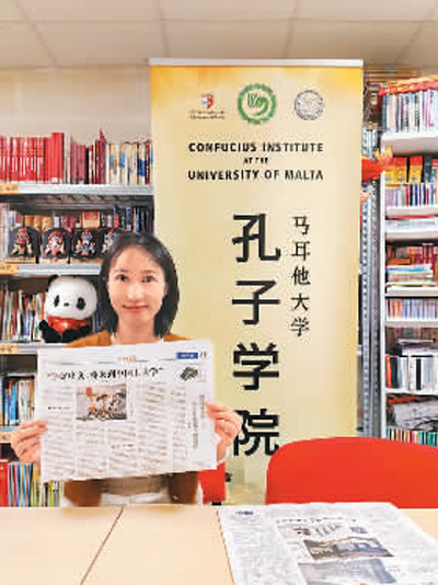 马耳他大学孔子学院的师生正在阅读《人民日报海外版》。