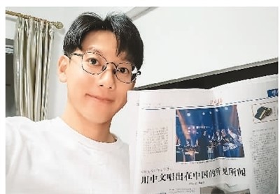 孙怡展示刊登自己文章的《人民日报海外版》。