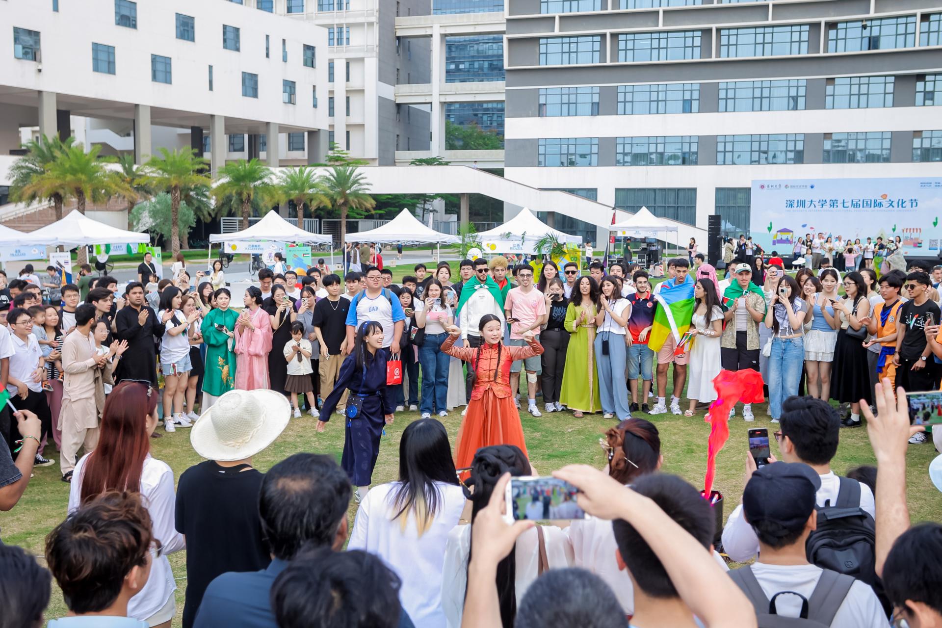 4月13日,深圳大学第七届国际文化节在粤海校区南区大草坪举行。本次活动由来自五大洲26个国家的中外学生合力呈现,参与高校、参与学生、参与国别、演出节目数量等均达历史最多。