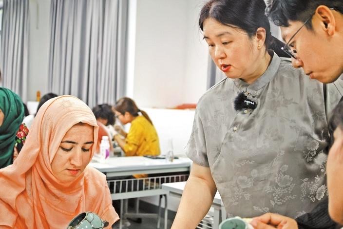 Students work on a kintsugi item at Shenzhen University on Sunday.